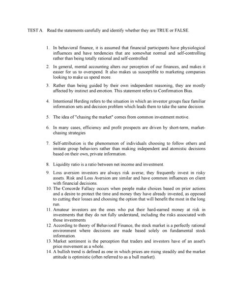 Behavioral Finance Test Questions: A Guide to Ace Your Exam in 2023